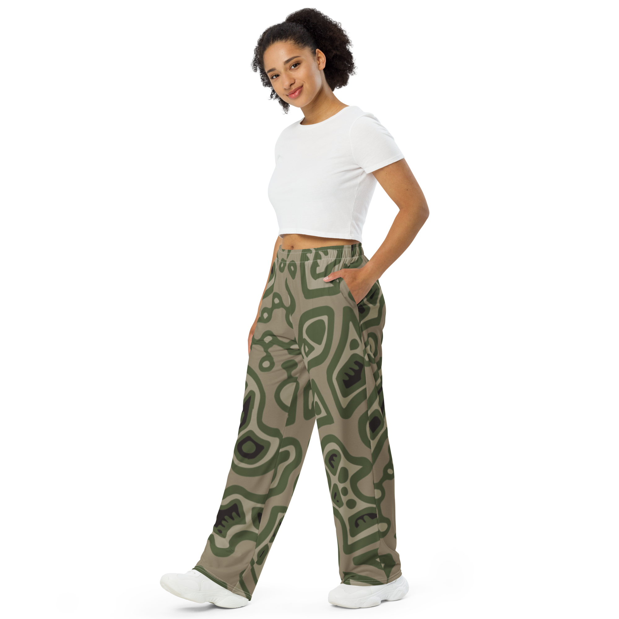 All-over print unisex wide-leg pants forest